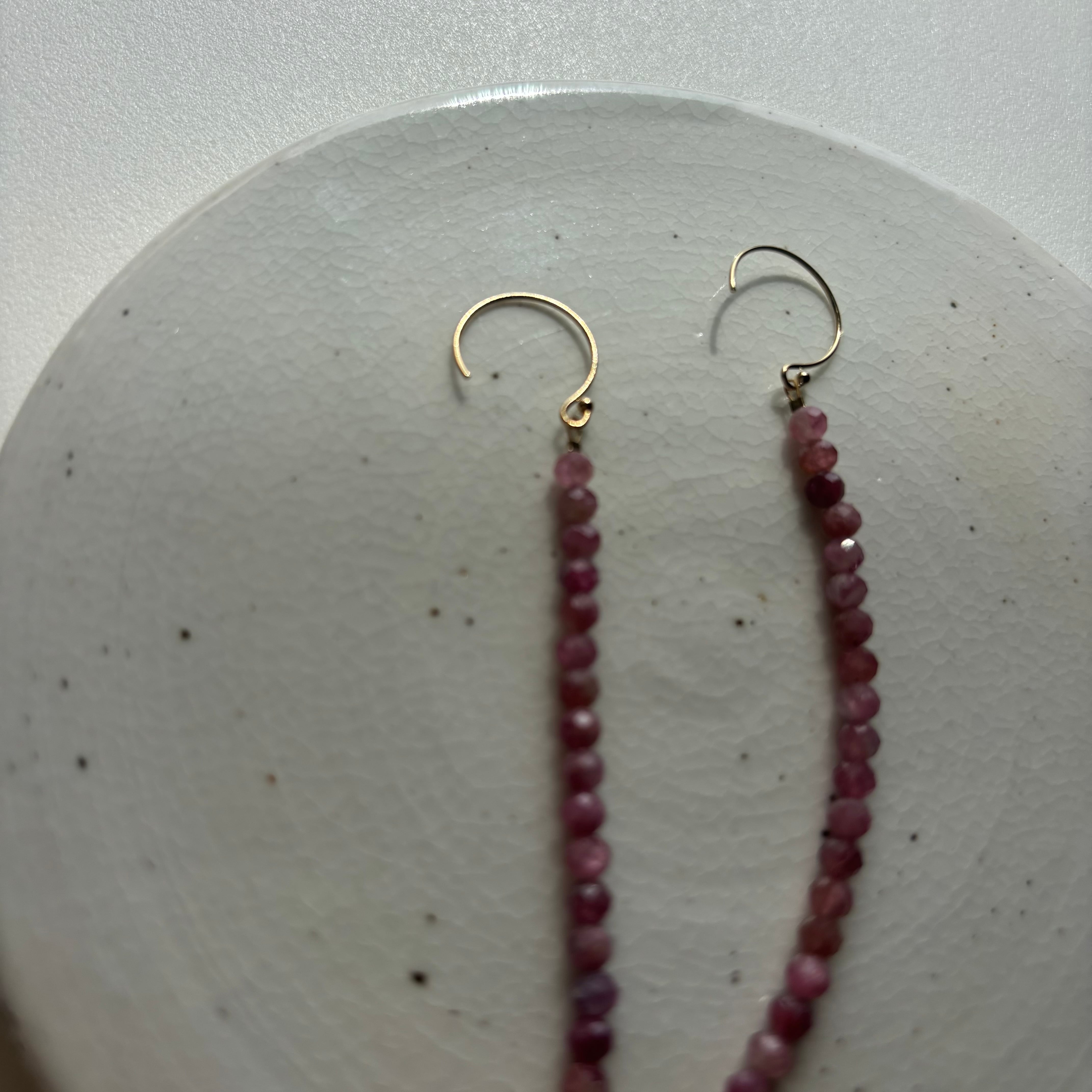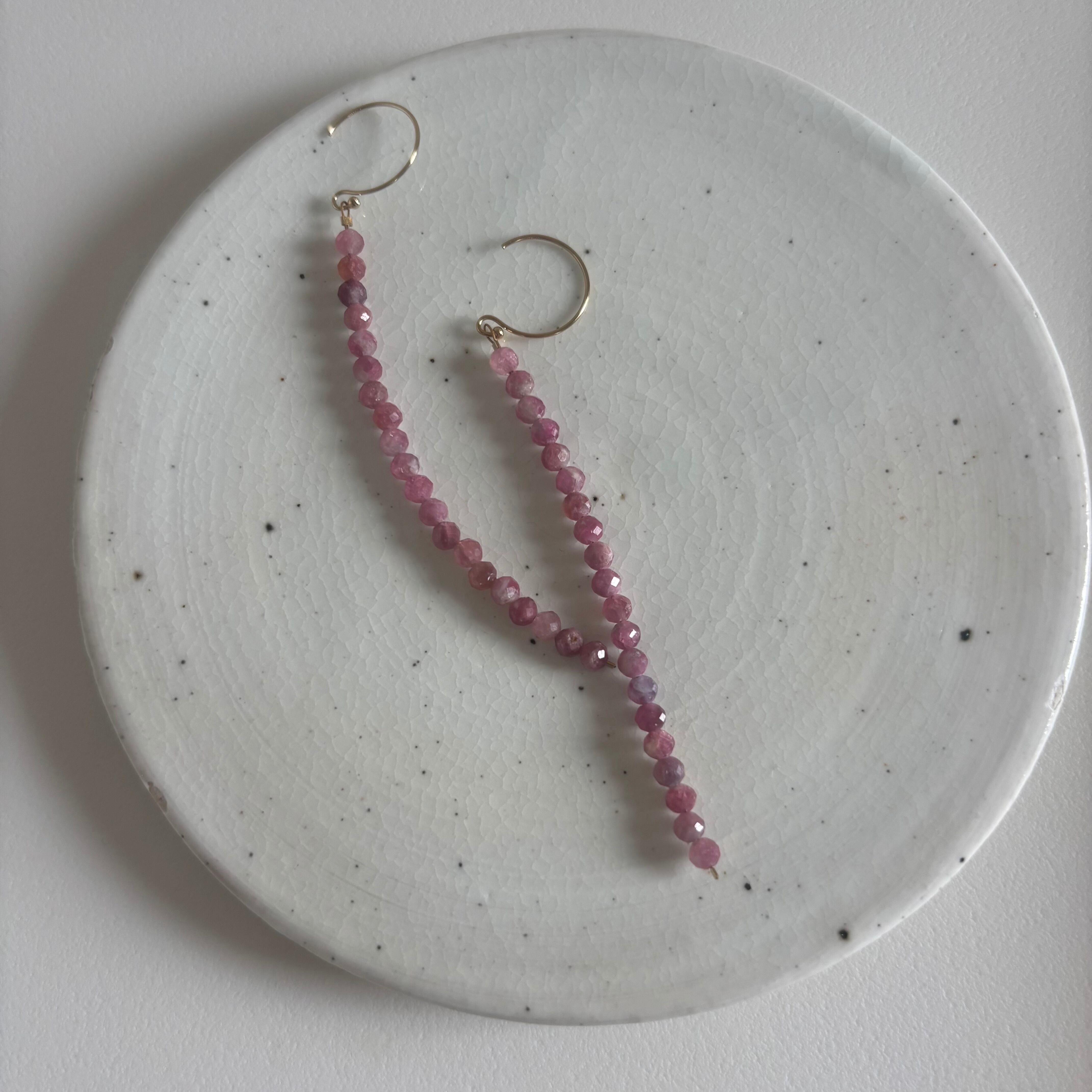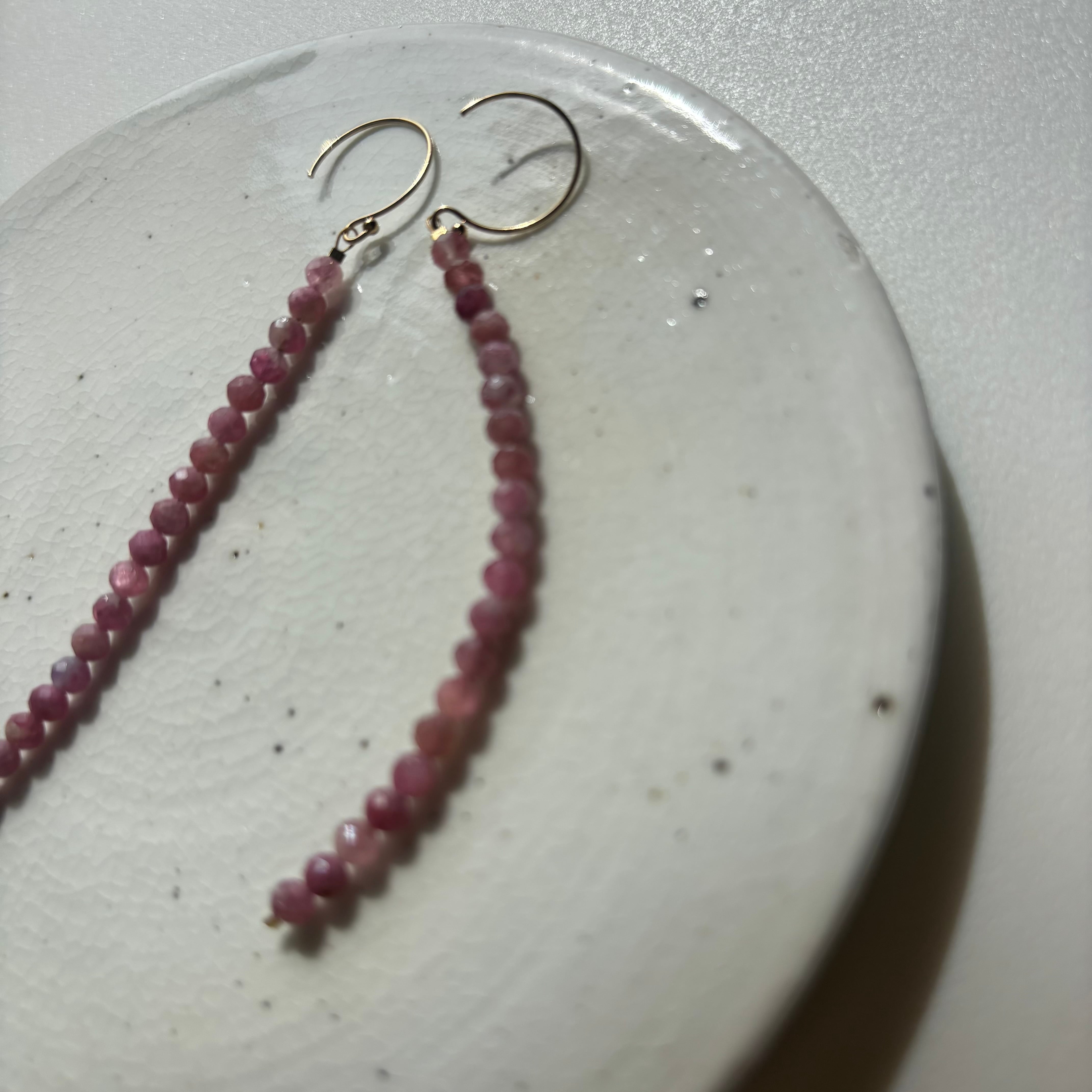 ピンクトルマリンを使用した、上品で華やかなロングピアスです。14kgfのフックに美しくセットされたピンクトルマリンは、透明感と淡いピンク色が特徴的で、耳元を優しく彩ります。シンプルながらも存在感のあるデザインは、日常使いから特別なシーンまで幅広く活躍します。
