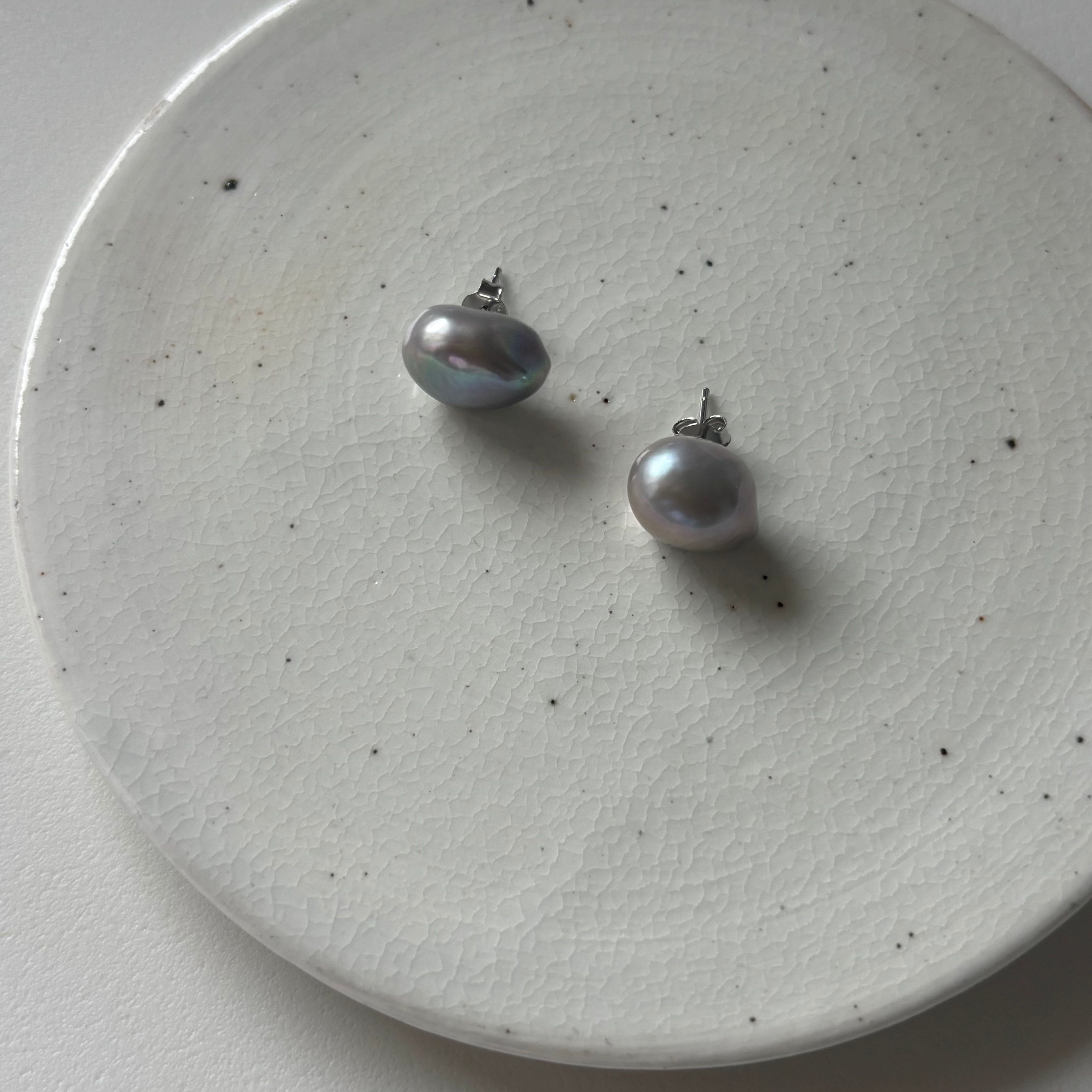 gray baroque pearl stud pierce
